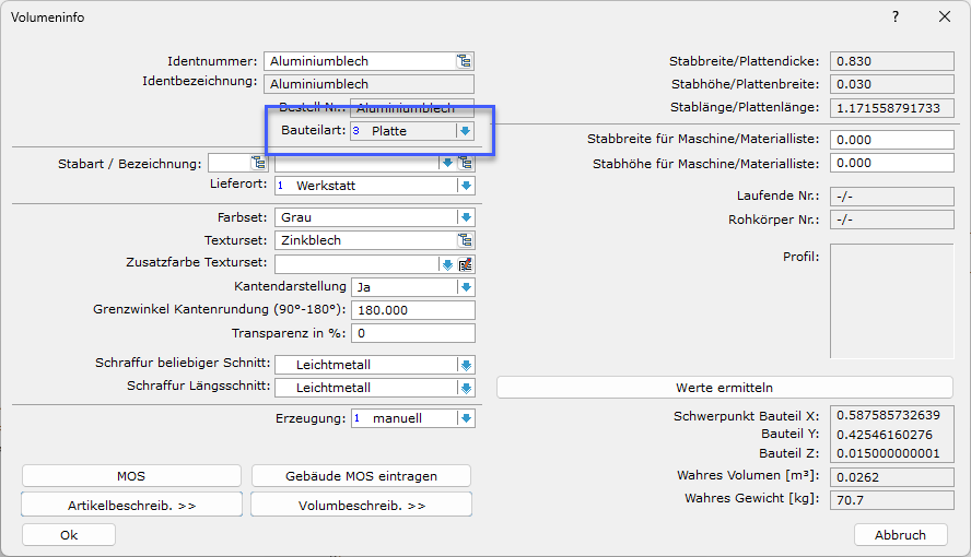 Für das eingeschlitzte Blech muss als Bauteilart zwingend eine Platte gewählt werden.